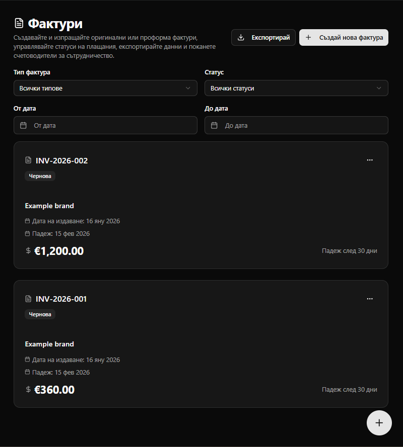 - Пълна история на фактурите