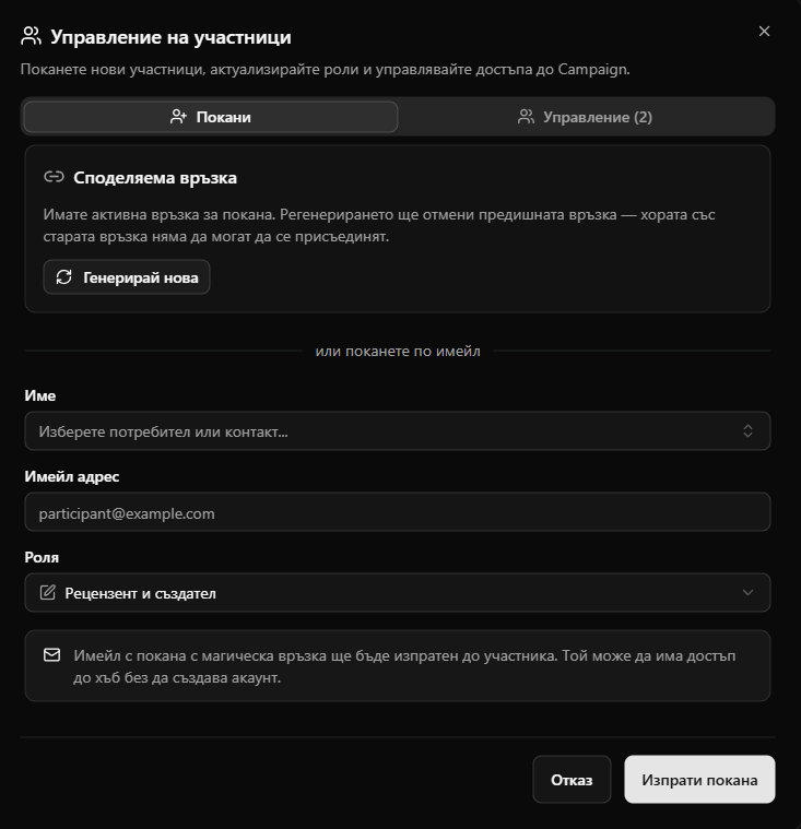 - Покана чрез споделяеми връзки